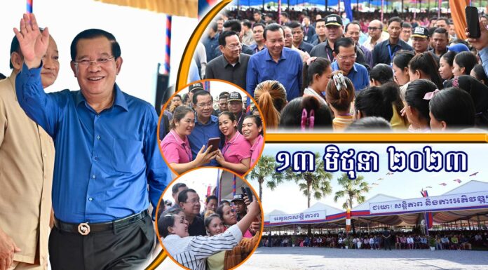 សម្តេចអគ្គមហាសេនាបតីតេជោ ហ៊ុន សែន នាយករដ្ឋមន្ត្រី នៃព្រះរាជាណាចក្រកម្ពុជា បានអញ្ជើញចុះជួបសំណេះសំណាលជាមួយកម្មករ កម្មការិនីសរុបជិត២ម៉ឺននាក់ មកពីរោងចក្រ សហគ្រាសចំនួន១២។ ជំនួបសំណេះសំណាលធ្វើឡើង