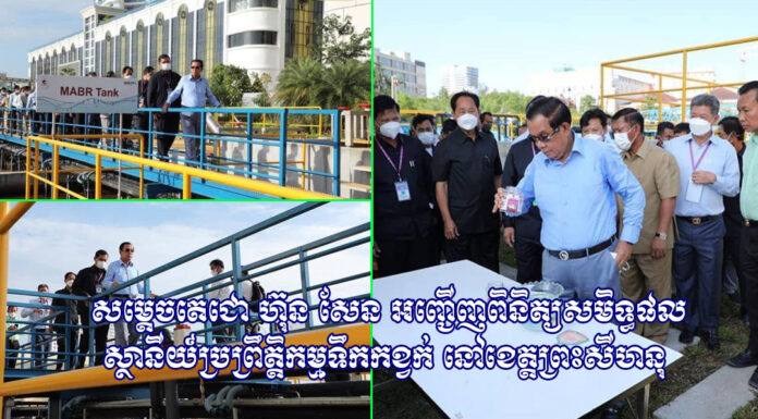 សម្ដេចអគ្គមហាសេនាបតីតេជោ ហ៊ុន សែន នាយករដ្ឋមន្ត្រី នៃព្រះរាជាណាចក្រកម្ពុជា អញ្ជើញពិនិត្យ សមិទ្ធផលស្ថានីយ៍ ប្រព្រឹត្តិកម្ម ទឹកកខ្វក់ នៅខេត្តព្រះសីហនុ។