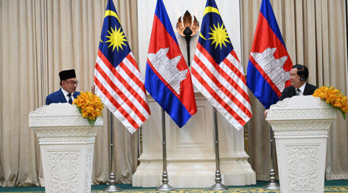 សម្តេចអគ្គមហាសេនាបតីតេជោ ហ៊ុន សែន នាយករដ្ឋមន្ត្រី នៃព្រះរាជាណាចក្រកម្ពុជា រួមជាមួយនឹងឯកឧត្តម Datuk Seri Anwar Ibrahim នាយករដ្ឋមន្ត្រីម៉ាឡេស៊ី