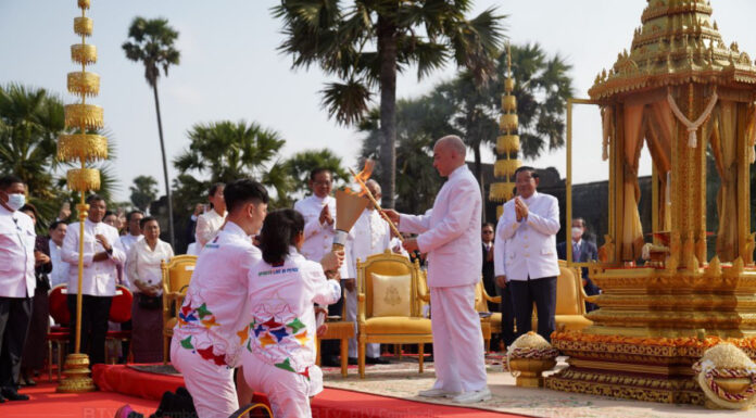 ព្រឹត្តិការណ៍ព្រះរាជពិធីប្រោសព្រះរាជទាន ព្រះអគ្គិជ័យកីឡា និងពិធីរត់ភ្លើងគប់កីឡា សម្រាប់ព្រឹត្តិការណ៍ប្រកួតកីឡាអាស៊ីអាគ្នេយ៍លើកទី៣២ និងកីឡាអាស៊ានប៉ារ៉ាហ្គេមលើកទី១២ ឆ្នាំ២០២៣ នៅប្រាសាទអង្គរវត្ត ក្រោមព្រះរាជា ធិបតី ព្រះករុណា