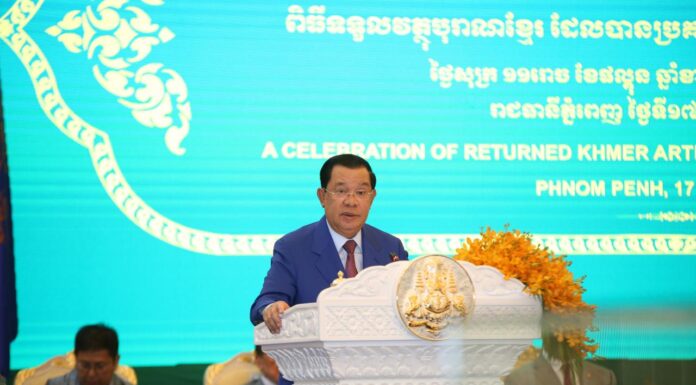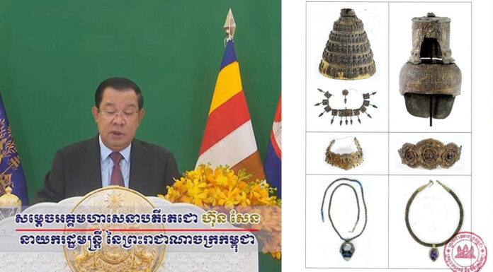 ពិធីទទួលរតនវត្ថុរបស់ខ្មែរ ដែលទាមទារបានពីបរទេសមកវិញ ក្រោមអធិបតីភាពដ៏ខ្ពង់ខ្ពស់របស់សម្តេចតេជោ ហ៊ុន សែន នាយករដ្ឋមន្រ្តីនៃកម្ពុជា នាវិមានសន្តិភាព ថ្ងៃទី១៧ ខែមីនា ឆ្នាំ២០២៣