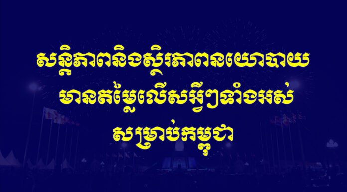 សន្តិភាពដែលកើតចេញពីនយោបាយឈ្នះឈ្នះ របស់រាជរដ្ឋាភិបាល គឺជាមូលដ្ឋានដ៏រឹងមាំ និងមានតម្លៃពុំអាចកាត់ថ្លៃបាន ដែលនាំឱ្យប្រទេសកម្ពុជាអាចឈានមកដល់ការអភិវឌ្ឍលើគ្រប់ វិស័យដូចសព្វថ្ងៃ