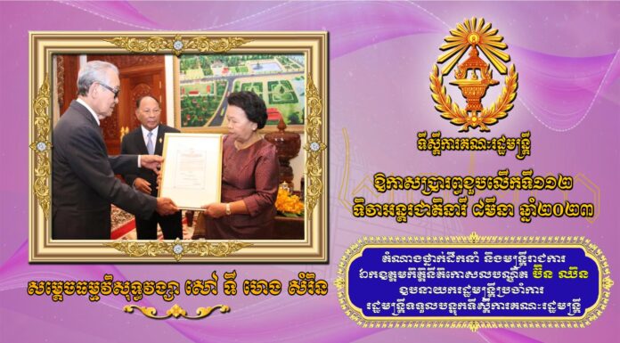 សារលិខិតជូនពររបស់ ឯកឧត្តមកិត្តិនីតិកោសលបណ្ឌិត ប៊ិន ឈិន ឧបនាយករដ្ឋមន្រ្តីប្រចាំការ រដ្ឋមន្រ្តីទទួលបន្ទុកទីស្តីការគណៈរដ្ឋមន្រ្តី ជូនសម្តេចធម្មវិសុទ្ធវង្សា សៅ ទី ហេង សំរិន ក្នុងឱកាសប្រារព្ធខួបលើកទី១១២ ទិវាអន្តរជាតិនារី ៨មីនា ឆ្នាំ២០២៣