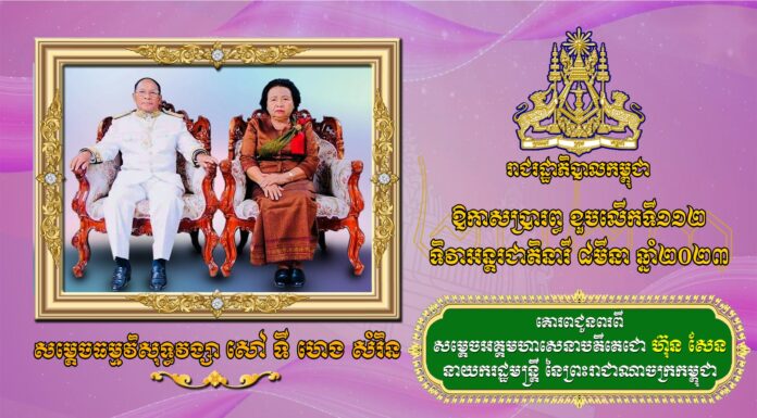 នៅល្ងាចថ្ងៃព្រហស្បតិ៍ ៣ រោច ខែផល្គុន ឆ្នាំខាល ចត្វាស័ក ពុទ្ធសករាជ ២៥៦៦ ត្រូវនឹងថ្ងៃទី៩ ខែមីនា ឆ្នាំ២០២៣ សម្តេចអគ្គមហាសេនាបតីតេជោ ហ៊ុន សែន នាយករដ្ឋមន្រ្តី នៃព្រះរាជាណាចក្រកម្ពុជា