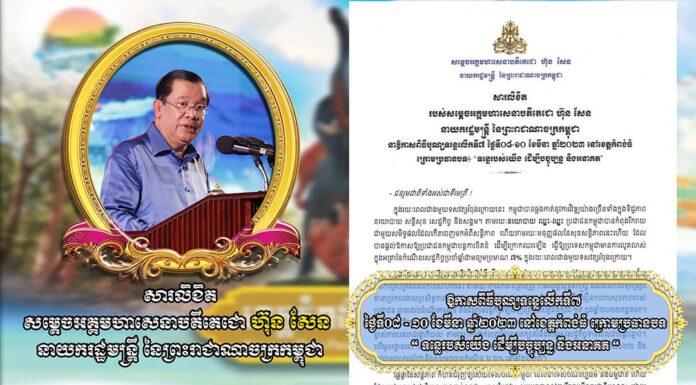 សម្តេចអគ្គមហាសេនាបតីតេជោ ហ៊ុន សែន នាយករដ្ឋមន្ត្រី នៃព្រះរាជាណាចក្រកម្ពុជា បានចេញសារលិខិត នាឱកាសពិធីបុណ្យទន្លេលើកទី៧ នៅថ្ងៃទី០៨-១០ ខែមីនា ឆ្នាំ២០២៣ នៅខេត្តកំពង់ធំ