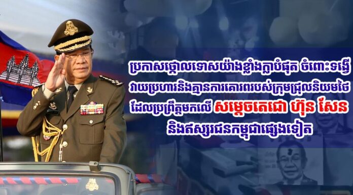 ឯកឧត្តម ទេសរដ្ឋមន្រ្តី គី តិច ប្រធានក្រុមមេធាវីរាជរដ្ឋាភិបាល និងជាប្រធានក្រុមមេធាវីស្ម័គ្រចិត្ត តេជោសែន សូមសម្ដែងនូវការសោកស្តាយជាពន់ពេក និងសូមប្រកាសថ្កោលទោសយ៉ាងខ្លាំងក្លាបំផុត