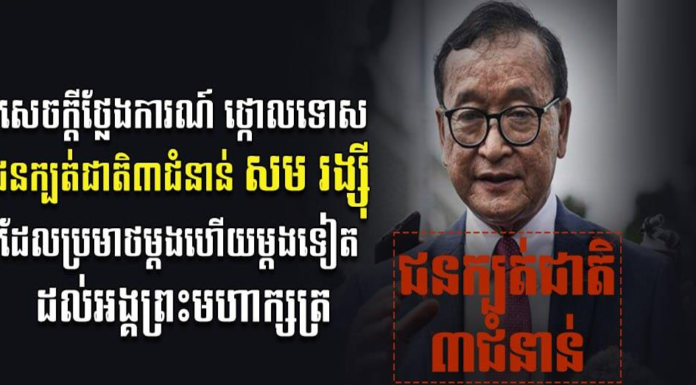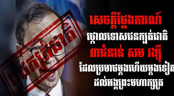 ឯកឧត្តម ស្វាយ ស៊ីថា រដ្ឋមន្រ្តីប្រតិភូអម និងជាប្រធានអង្គភាពព័ត៌មាន និងប្រតិកម្មរហ័ស នៅថ្ងៃទី២១ ខែកុម្ភៈ ឆ្នាំ២០២៣នេះ បានថ្កោលទោសយ៉ាងដាច់អហង្ការចំពោះ ជនក្បត់ជាតិ៣ជំនាន់ សម រង្ស៉ី ដែលបានប្រមាថជាថ្មីដល់ អង្គព្រះមហាក្សត្រ
