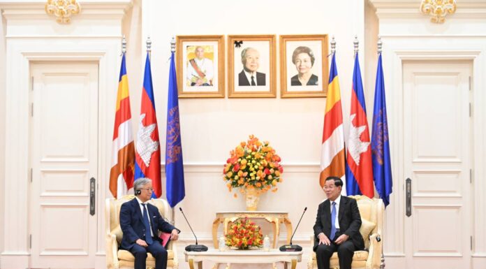 នៅវិមានសន្តិភាព នាព្រឹកថ្ងៃទី០៨ ខែកុម្ភៈ ឆ្នាំ២០២៣ សម្តេចអគ្គមហាសេនាបតីតេជោ ហ៊ុន សែន នាយករដ្ឋមន្រ្តីនៃព្រះរាជាណាចក្រកម្ពុជា បានអនុញ្ញាតឱ្យឯកឧត្តម UENO Atsushi ឯកអគ្គរាជទូតជប៉ុន តែងតាំងថ្មីប្រចាំព្រះរាជាណាចក្រកម្ពុជា