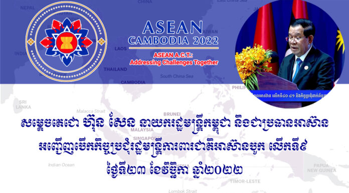 សម្ដេចអគ្គមហាសេនាបតីតេជោ ហ៊ុន សែន នាយករដ្ឋមន្ត្រី នៃព្រះរាជាណាចក្រកម្ពុជា និងជាប្រធានអាស៊ាន បានអញ្ជើញជាអធិបតីភាព នៅក្នុងពិធីបើកកិច្ចប្រជុំរដ្ឋមន្ត្រីការពារជាតិអាស៊ាន ដែលប្រព្រឹត្តទៅនៅសណ្ឋាគារសុខា ខេត្តសៀមរាប