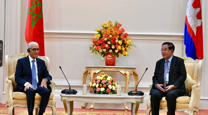 នៅវិមានសន្តិភាព នារសៀលថ្ងៃទី ២៣ ខែវិច្ឆិកា ឆ្នាំ២០២២នេះ សម្ដេចអគ្គមហាសេនាបតីតេជោ ហ៊ុន សែន នាយករដ្ឋមន្ត្រី នៃព្រះរាជាណាចក្រកម្ពុជា បានអញ្ជើញទទួលជួបពិភាក្សាការងារជាមួយឯកឧត្តម Rachid Talbi El Alami ប្រធានរដ្ឋសភាម៉ារ៉ុក