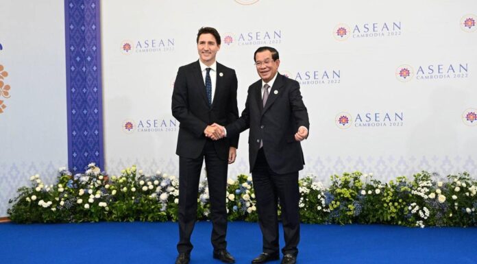 សម្តេចអគ្គមហាសេនាបតីតេជោ ហ៊ុន សែន នាយករដ្ឋមន្រ្តីនៃព្រះរាជាណាចក្រកម្ពុជា និងជាប្រធានអាស៊ានឆ្នាំ២០២២ បានអញ្ជើញធ្វើជាសហប្រធានជាមួយ ឯកឧត្តម Justin Trudeau នាយករដ្ឋមន្រ្ដីកាណាដា ដឹកនាំកិច្ចប្រជុំកំពូលរំលឹកខួបនៃទំនាក់ទំនងអាស៊ាន-កាណាដា