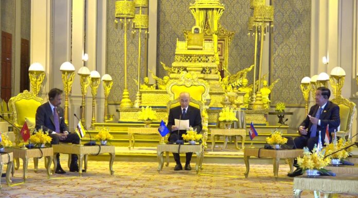 ព្រះករុណា ព្រះបាទសម្តេចព្រះបរមនាថ នរោត្តម សីហមុនី ព្រះមហាក្សត្រនៃព្រះរាជាណាចក្រកម្ពុជា ជាទីសក្ការៈដ៏ខ្ពង់ខ្ពស់បំផុត ព្រះអង្គសព្វព្រះរាជហឬទ័យ ព្រះបរមរាជានុញ្ញាតថ្វាយព្រះចៅស៊ុលតង់នៃប្រទេសព្រុយណេដារូសាឡេឹម