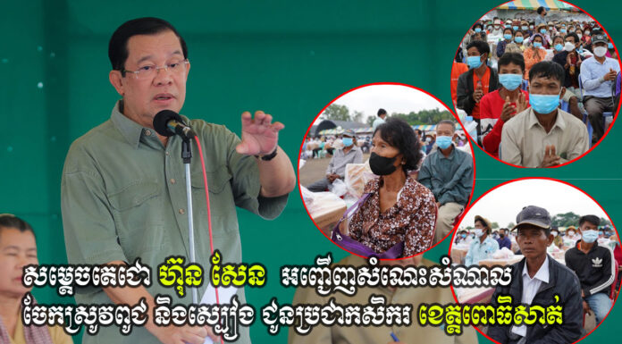 សម្តេចអគ្គមហាសេនាបតីតេជោ ហ៊ុន សែន នាយករដ្ឋមន្ត្រី នៃព្រះរាជាណាចក្រកម្ពុជា បានអញ្ជើញផ្តល់ស្រូវពូជប្រមាណ ៥១៤,៥០០គីឡូក្រាម ជូនកសិករប្រមាណ ៥,១៤៥គ្រួសារ រងគ្រោះដោយសារគ្រោះទឹកជំនន់ នៅខេត្តពោធិ៍សាត់។