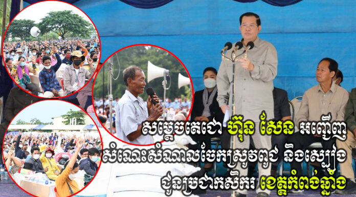 សម្ដេចអគ្គមហាសេនាបតីតេជោ ហ៊ុន សែន នាយករដ្ឋមន្ត្រី នៃព្រះរាជាណាចក្រកម្ពុជា អញ្ជើញសំណេះសំណាល និងផ្តល់ស្រូវពូជ ព្រមទាំងស្បៀងអាហារ ដល់ប្រជាកសិករដែលរងគ្រោះដោយទឹកជំនន់ នៅខេត្តបាត់ដំបងចំនួន ១១.៥២៨ គ្រួសារ