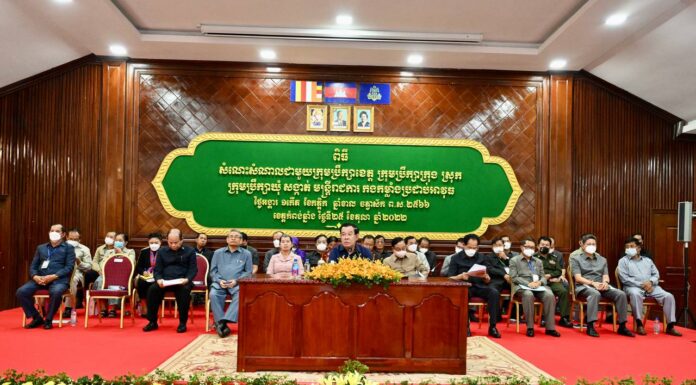 នៅរសៀលថ្ងៃទី២៥ ខែតុលា ឆ្នាំ២០២២នេះ សម្តេចអគ្គមហាសេនាបតីតេជោ ហ៊ុន សែន នាយករដ្ឋមន្ត្រី នៃព្រះរាជាណាចក្រកម្ពុជា បានអញ្ជើញជួបសំណេះសំណាលជាមួយក្រុមប្រឹក្សាខេត្ត ក្រុង ស្រុក ឃុំ សង្កាត់ មន្ត្រីរាជការ និងកងកម្លាំងប្រដាប់អាវុធក្នុងខេត្តកំពង់ឆ្នាំង