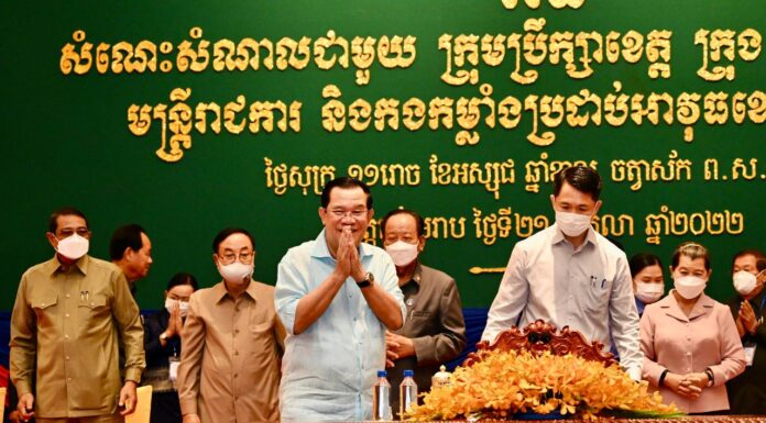 នៅរសៀលថ្ងៃទី២១ ខែតុលា ឆ្នាំ២០២២ សម្តេចអគ្គមហាសេនាបតីតេជោ ហ៊ុន សែន នាយករដ្ឋមន្ត្រីនៃព្រះរាជាណាចក្រកម្ពុជា បានអញ្ជើញជួបសំណេះសំណាលជាមួយក្រុមប្រឹក្សាខេត្ត ក្រុង ស្រុក ឃុំ សង្កាត់ មន្ត្រីរាជការ និងកងកម្លាំងប្រដាប់អាវុធក្នុងខេត្តសៀមរាប ប្រមាណជាង២ពាន់នាក់