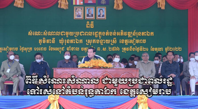 នៅព្រឹកថ្ងៃសុក្រ ទី២១ ខែតុលា ឆ្នាំ២០២២នេះ សម្តេចអគ្គមហាសេនាបតីតេជោ ហ៊ុន សែន នាយករដ្ឋមន្ត្រីនៃព្រះរាជាណាចក្រកម្ពុជា បានបន្តជួបសំណេះសំណាលជាលើកទី៣ ជាមួយប្រជាពលរដ្ឋប្រមាណ ១,៨៥៣គ្រួសារទៀត ដែលបានស្ម័គ្រចិត្តរើលំនៅឋាន និងសំណង់ផ្សេងៗចេញពីតំបន់រមណីយដ្ឋានអង្គរ និងតំបន់