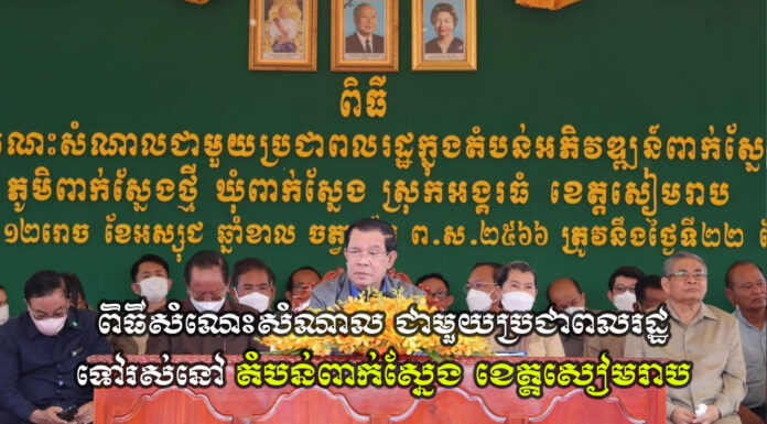 សម្តេចអគ្គមហាសេនាបតីតេជោ ហ៊ុន សែន នាយករដ្ឋមន្ត្រីនៃព្រះរាជាណាចក្រកម្ពុជា អញ្ជើញជួបសំណេះសំណាលជាមួយប្រជាពលរដ្ឋជាច្រើនគ្រួសារបន្ថែមទៀត ដែលបានស្ម័គ្រចិត្តរើលំនៅឋាន និងសំណង់ផ្សេងៗចេញពីតំបន់រមណីយដ្ឋានអង្គរ