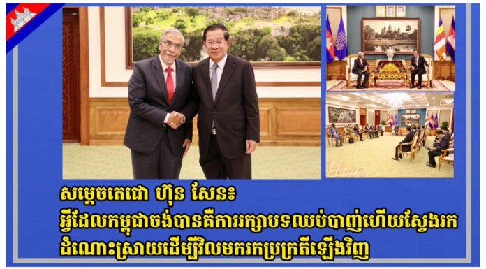 សម្តេចអគ្គមហាសេនាបតីតេជោ ហ៊ុន សែន ប្រមុខរដ្ឋស្តីទីនៃព្រះរាជាណាចក្រកម្ពុជា អនុញ្ញាតឱ្យ ប្រតិភូសមាជិកព្រឹទ្ធសភាសហព័ន្ធម៉ាឡេស៊ីដឹកនាំដោយ ឯកឧត្តម Datuk Wira Dr. Mohd Hatta bin Md Ramli ចូលជួបសម្តែងការគួរសមនៅវិមានព្រឹទ្ធសភា
