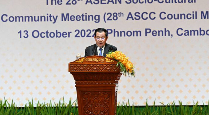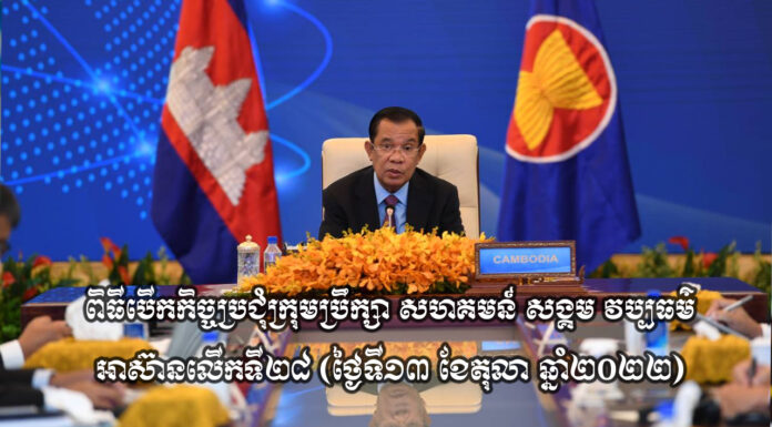 សម្តេចអគ្គមហាសេនាបតីតេជោ ហ៊ុន សែន នាយករដ្ឋមន្ត្រី នៃព្រះរាជាណាចក្រកម្ពុជា និងជាប្រធានអាស៊ាន អញ្ជើញជាអធិបតីភាពដ៏ខ្ពង់ខ្ពស់ក្នុងពិធីបើកកិច្ចប្រជុំក្រុមប្រឹក្សាសហគមន៍ សង្គម វប្បធម៌អាស៊ានលើកទី២៨ ដែលកិច្ចប្រជុំនេះ ធ្វើឡើងនៅសណ្ឋាគារ សុខាភ្នំពេញ។