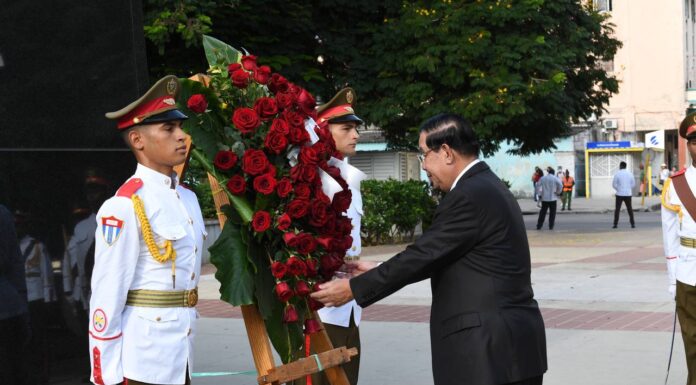 (គុយបា)៖ នៅព្រឹកថ្ងៃទី២៥ ខែកញ្ញា (ម៉ោងនៅគុយបា) សម្តេចតេជោ ហ៊ុន សែន នាយករដ្ឋមន្ត្រីកម្ពុជា និងគណៈប្រតិភូជាន់ខ្ពស់រាជរដ្ឋាភិបាលកម្ពុជា អញ្ជើញទស្សនកិច្ចនៅមជ្ឈមណ្ឌល Fidel Castro ក្នុងរដ្ឋធានីហាវ៉ាណា ប្រទេសគុយបា