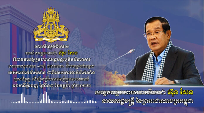 នៅព្រឹក ថ្ងៃចន្ទ ១៣កើត ខែអាសាឍ ឆ្នាំខាល ចត្វាស័ក ព.ស. ២៥៦៦ ត្រូវនឹង ថ្ងៃទី១១ ខែកក្កដា ឆ្នាំ២០២២ សម្ដេចអគ្គមហាសេនាបតីតេជោ ហ៊ុន សែន នាយករដ្ឋមន្ត្រី នៃព្រះរាជាណាចក្រកម្ពុជា អញ្ជើញជាអធិបតីភាពនៅក្នុងកិច្ចប្រជុំ