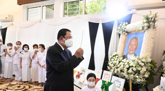 នៅរសៀលថ្ងៃទី១៤កក្កដា សម្តេចអគ្គមហាសេនាបតីតេជោ ហ៊ុន សែន នាយករដ្ឋមន្រ្តី នៃព្រះរាជាណាចក្រកម្ពុជា បានដឹកនាំគណៈប្រតិភូជាន់ខ្ពស់ រាជរដ្ឋាភិបាលកម្ពុជា អញ្ជើញគោរពវិញ្ញាណក្ខន្ធសព ឯកឧត្តម អ៊ឹង គៀត ឧត្តមប្រឹក្សាផ្ទាល់ព្រះមហាក្សត្