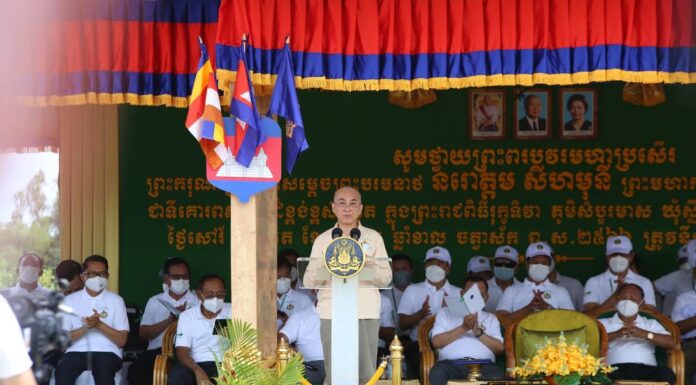 ព្រះករុណា ព្រះបាទសម្តេច ព្រះបរមនាថ នរោត្តម សីហមុនី ព្រះមហាក្សត្រ នៃព្រះរាជាណាចក្រកម្ពុជា ព្រះអង្គសព្វព្រះរាជហឫទ័យ ស្តេចយាងជាព្រះរាជាធិបតីដ៏ខ្ពង់ខ្ពស់ ក្នុងពិធីបុណ្យរុក្ខទិវាប្រចាំឆ្នាំ២០២២ ស្ថិតក្នុងភូមិសំបួរមាស ឃុំស្នឹង ស្រុកបាណន់ ខេត្តបាត់ដំបង