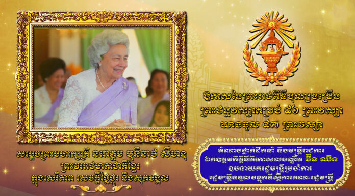 សារលិខិតថ្វាយព្រះពររបស់ សម្តេចអគ្គមហាសេនាបតីតេជោ ហ៊ុន សែន នាយករដ្ឋមន្រ្តី នៃព្រះរាជាណាចក្រកម្ពុជា ថ្វាយសម្តេចព្រះមហាក្សត្រី នរោត្តម មុនិនាថ សីហនុ ព្រះរវរាជមាតាជាតិខ្មែរ ក្នុងសេរីភាព សេចក្តីថ្លៃថ្នូរ និងសុភមង្គល នៅក្នុងឱកាសព្រះរាជពិធីបុណ្យចម្រើនព្រះជន្មវស្សាគម្រប់៨៦ព្រះវស្សា យាងចូល៨៧ ព្រះវស្សា