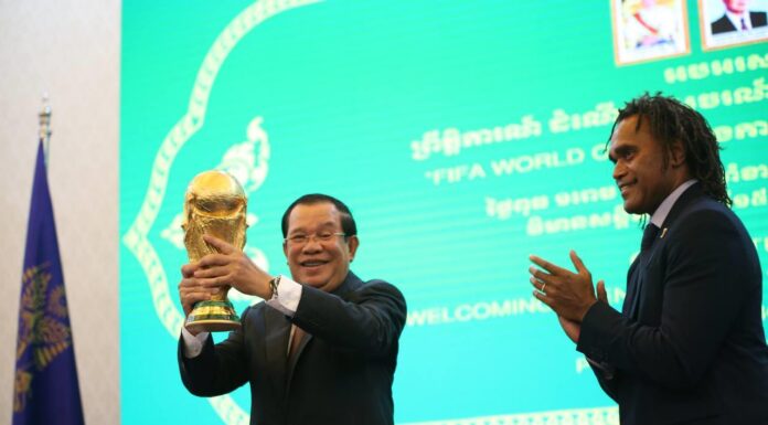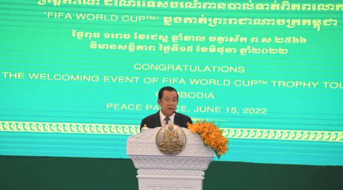 នៅព្រឹក ថ្ងៃពុធ ១រោច ខែជេស្ឋ ឆ្នាំខាល ចត្វាស័ក ព.ស. ២៥៦៦ ត្រូវនឹង ថ្ងៃទី១៥ ខែមិថុនា ឆ្នាំ២០២២ សម្ដេចអគ្គមហាសេនាបតីតេជោ ហ៊ុន សែន នាយករដ្ឋមន្ត្រី នៃព្រះរាជាណាចក្រកម្ពុជា បានអញ្ជើញទទួលពានរង្វាន់បាល់ទាត់ពិភពលោក (FIFA WORLD CUP)