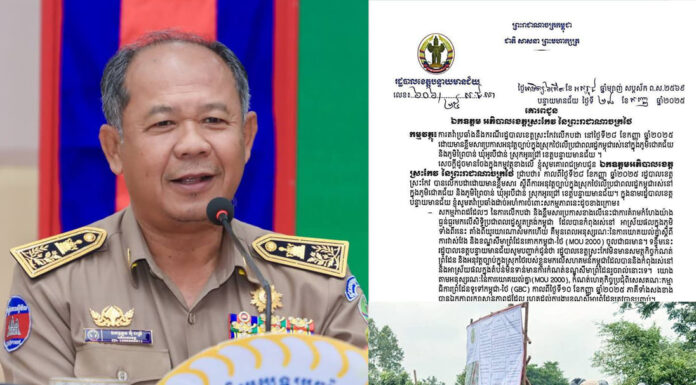 លិខិតតវ៉ារបស់ឯកឧត្តម អ៊ុ រាត្រី អភិបាលនៃគណៈអភិបាលខេត្តបន្ទាយមានជ័យ នៃព្រះរាជាណាចក្រកម្ពុជា ទៅកាន់ អភិបាលខេត្តស្រះកែវ នៃព្រះរាជាណាចក្រថៃ