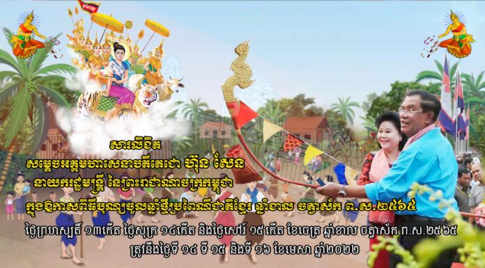 សារលិខិត សម្តេចអគ្គមហាសេនាបតីតេជោ ហ៊ុន សែន នាយករដ្ឋមន្ត្រី នៃព្រះរាជាណាចក្រកម្ពុជា ក្នុងឱកាសពិធីបុណ្យចូលឆ្នាំថ្មីប្រពៃណីជាតិខ្មែរ ឆ្នាំខាល ចត្វាស័ក ព.ស.២៥៦៥