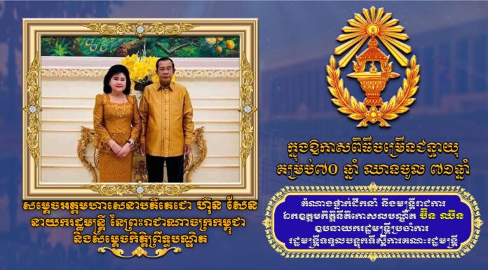 សារលិខិតជូនពររបស់ ឯកឧត្តមកិត្តិនីតិកោសលបណ្ឌិត ប៊ិន ឈិន ឧបនាយករដ្ឋមន្រ្តីប្រចាំការ រដ្ឋមន្រ្តីទទួលបន្ទុកទីស្តីការគណៈរដ្ឋមន្រ្តី ជូនសម្តេចអគ្គមហាសេនាបតីតេជោ ហ៊ុន សែន នាយករដ្ឋមន្រ្តីនៃព្រះរាជាណាចក្រកម្ពុជា នៅក្នុងឱកាសពិធីចម្រើនជន្មាយុគម្រប់៧០ឆ្នាំ ឈានចូល៧១ឆ្នាំ