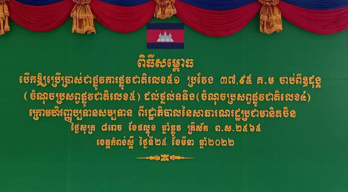 នៅព្រឹកថ្ងៃពុធ ៦រោច ខែផល្គុន ឆ្នាំឆ្លូវ ត្រីស័ក ព.ស. ២៥៦៥ ត្រូវនឹងថ្ងៃទី២៣ ខែមីនា ឆ្នាំ២០២២នេះ សម្តេចអគ្គមហាសេនាបតីតេជោ ហ៊ុន សែន នាយករដ្ឋមន្ត្រីនៃព្រះរាជាណាចក្រកម្ពុជា អញ្ជើញជាអធិបតីដ៏ខ្ពង់ខ្ពស់សម្ពោធដាក់ឱ្យប្រើប្រាស់ជាផ្លូវការនូវផ្លូវជាតិលេខ២១