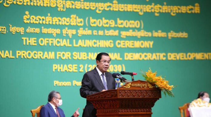 ថ្ងៃនេះ ខ្ញុំមានសេចក្ដីរីករាយ ដោយបានមកចូលរួម ក្នុងពិធីប្រកាសផ្សព្វផ្សាយ និងដាក់ឱ្យអនុវត្តជាផ្លូវការនូវកម្មវិធីជាតិ សម្រាប់ការអភិវឌ្ឍតាមបែបប្រជាធិបតេយ្យនៅថ្នាក់ក្រោមជាតិដំណាក់កាលទី ២ (២០២១-២០៣០) បន្ទាប់ពីដំណាក់កាលទី ១