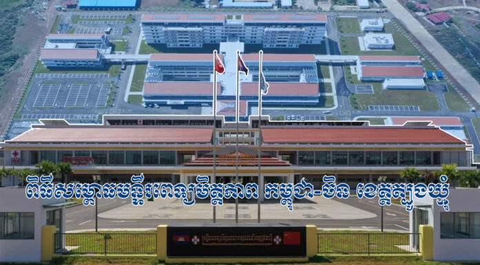 ថ្ងៃនេះ ខ្ញុំមានការសប្បាយរីករាយ ដែលបានមកចូលរួមជាមួយនឹងឯកឧត្តម វ៉ាង វិនធៀន ក៏ដូចជា ជាមួយសម្ដេច ឯកឧត្តម លោកជំទាវ ក៏ដូចជាបងប្អូនជនរួមជាតិ ដើម្បីសម្ពោធដាក់ឱ្យប្រើប្រាស់នូវមន្ទីរពេទ្យដ៏ទំនើប