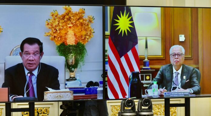 នៅព្រឹកថ្ងៃទី២៥ ខែមករា ឆ្នាំ២០២២នេះ សម្ដេចអគ្គមហាសេនាបតីតេជោ ហ៊ុន សែន នាយករដ្ឋមន្ត្រីនៃព្រះរាជាណាចក្រកម្ពុជា បានទទួលជួបពិភាក្សាការងារតាមប្រព័ន្ធវីដេអូជាមួយ ឯកឧត្តម Ismail Sabri Yaakob នាយករដ្ឋមន្ត្រី នៃប្រទេសម៉ាឡេស៊ី។