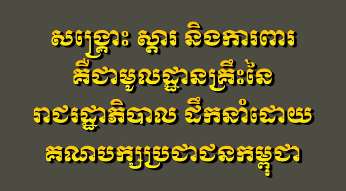 - សង្គ្រោះ ស្តារ និងការពារ គឺជាមូលដ្ឋានគ្រឹះនៃរាជរដ្ឋាភិបាលដឹកនាំដោយគណបក្សប្រជាជនកម្ពុជា