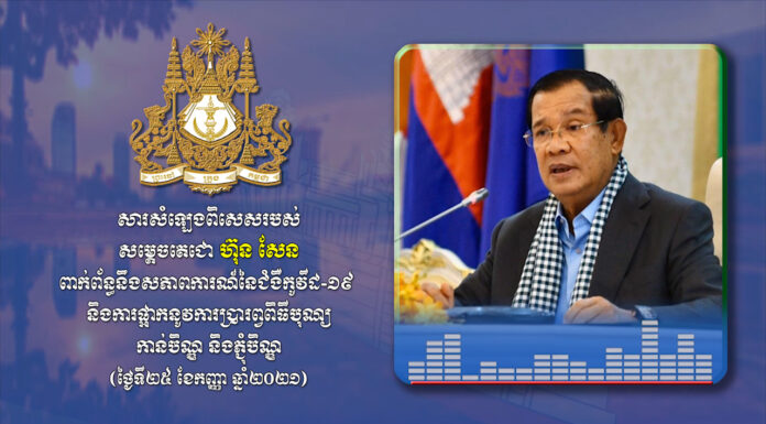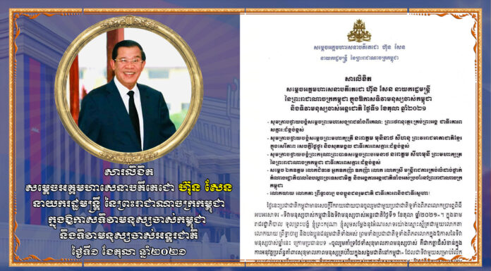 សារលិខិត សម្តេចអគ្គមហាសេនាបតីតេជោ ហ៊ុន សែន នាយករដ្ឋមន្រ្តី នៃព្រះរាជាណាចក្រកម្ពុជា ក្នុងឱកាសទិវាមនុស្សចាស់កម្ពុជា និងទិវាមនុស្សចាស់អន្តរជាតិ ថ្ងៃទី១ ខែតុលា ឆ្នាំ២០២១