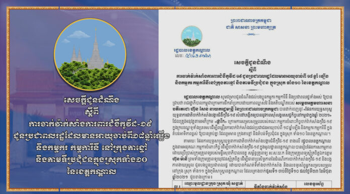 អាជ្ញាធរខេត្តសៀមរាប ចេញសេចក្តីសម្រេចស្តីពីការកំណត់ជា តំបន់ ក្រហម លឿងទុំ និងលឿង ក្នុងភូមិសាស្ត្រស្រុកសូទ្រនិគម និងស្រុកជីក្រែង ខេត្តសៀមរាប ដើម្បីទប់ស្កាត់ការឆ្លងរាលដាល