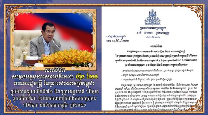 សារលិខិត សម្តេចអគ្គមហាសេនាបតីតេជោ ហ៊ុន សែន នាយករដ្ឋមន្រ្តី នៃព្រះរាជាណាចក្រកម្ពុជា ក្នុងឱកាសខួបលើកទី៧២ ទិវាកុមារអន្តរជាតិ ១មិថុនា ខួបលើកទី២០ ទិវាពិភពលោកប្រឆាំងពលកម្មកុមារ ១២មិថុនា និងទិវាកុមារកម្ពុជា ឆ្នាំ២០២១