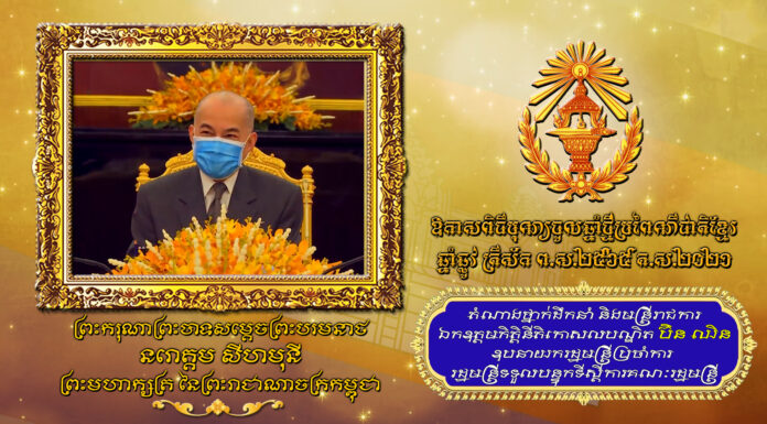 សារលិខិតថ្វាយព្រះពរ របស់ឯកឧត្តមកិត្តិនីតិកោសលបណ្ឌិត ប៊ិន ឈិន ថ្វាយ ព្រះករុណាព្រះបាទសម្តេចព្រះបរមនាថ នរោត្តម សីហមុនី ព្រះមហាក្សត្រ នៃព្រះរាជាណាចក្រកម្ពុជា ក្នុងឱកាសពិធីបុណ្យចូលឆ្នាំថ្មីប្រពៃណីជាតិខ្មែរ ឆ្នាំឆ្លូវ ត្រីស័ក ព.ស.២៥៦៥ គ.ស.២០២១