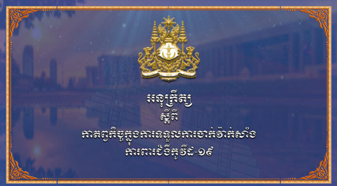 រាជរដ្ឋាភិបាលកម្ពុជា បានចេញអនុក្រឹត្យ ស្តីពី កាតព្វកិច្ចក្នុងការទទួលវ៉ាក់សាំងកាពារជំងឺកូវីដ-១៩