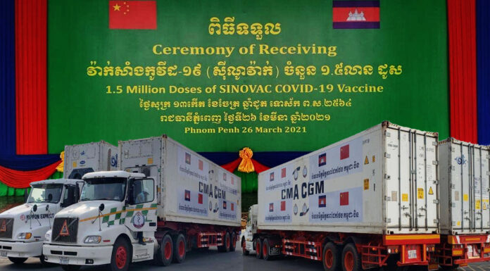 ពិធីទទួលវ៉ាក់សាំងប្រឆាំងកូវីដ១៩ ស៊ីណូវ៉ាក់ (Sinovac) ចំនួន ១.៥លានដូស ដែលបានបញ្ជាទិញដោយរាជរដ្ឋាភិបាលកម្ពុជា បានមកដល់កម្ពុជា នាព្រឹកថ្ងៃទី២៦ ខែមីនា ឆ្នាំ២០២១ នេះហើយ។