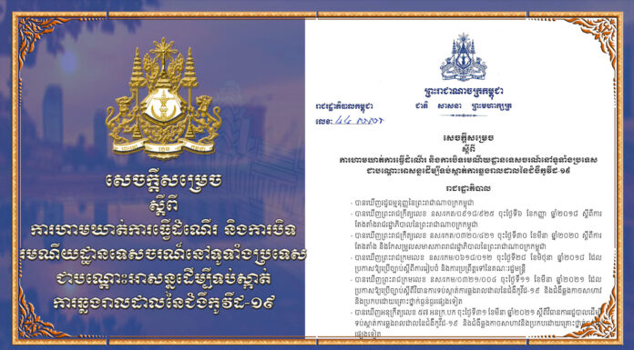 សេចក្តីសម្រេច ស្តីពី ការហាមឃាត់ការធ្វើដំណើរ និងការបិទ រមណីយដ្ឋានទេសចរណ៍នៅទូទាំងប្រទេសជាបណ្តោះអាសន្នដើម្បីទប់ស្កាត់ការឆ្លងរាលដាលនៃជំងឺកូវីដ-១៩