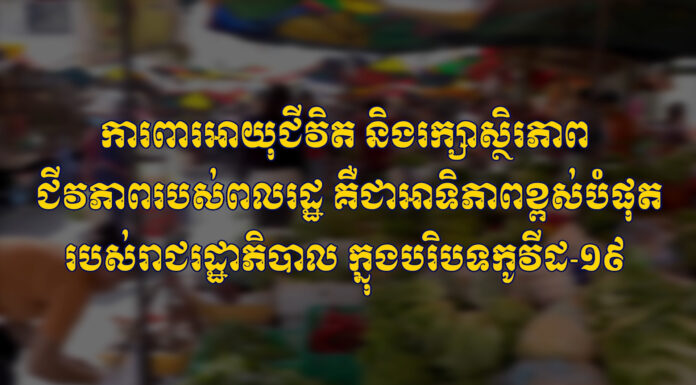 អង្គភាពព័ត៌មាន និងប្រតិកម្មរហ័ស នៃទីស្តីការគណៈរដ្ឋមន្ត្រី នៅថ្ងៃទី១៤ ខែមីនា ឆ្នាំ២០២១នេះ បានបញ្ចេញផ្សាយនូវវីដេអូថ្មីមួយទៀតដែលទើបនឹងផលិតរួចរាល់ មានចំណងជើងថា «ការពារអាយុជីវិតនិងរក្សាស្ថិរភាពជីវភាពរបស់ពលរដ្ឋគឺជាអាទិភាពខ្ពស់បំផុតរបស់រាជរដ្ឋាភិបាលក្នុងបរិបទកូវីដ-១៩ »
