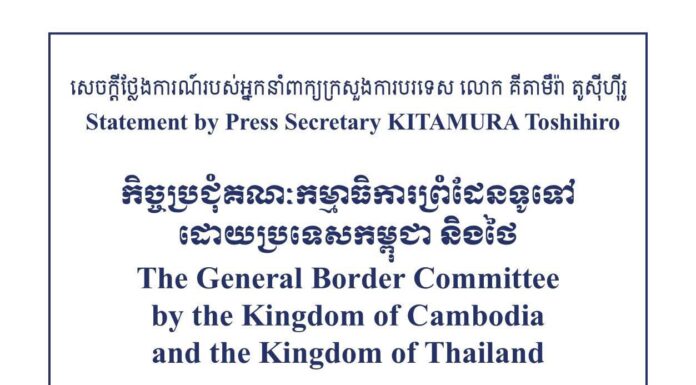 តាមរយៈសេចក្តីថ្លែងការណ៍របស់ខ្លួនតាមរយៈអ្នកនាំពាក្យក្រសួងការបរទេស លោក គីតាមឹរ៉ា តូស៊ីហ៊ីរូ, រដ្ឋាភិបាលជប៉ុនបានចូលរួមសាទរប្រទេសកម្ពុជា និងថៃ ដែលបានបើកកិច្ចប្រជុំគណៈកម្មាធិការព្រំដែនទូទៅកម្ពុជា-ថៃ