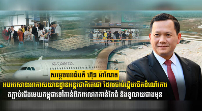 សម្តេចបវរធិបតី ហ៊ុន ម៉ាណែត នាយករដ្ឋមន្ត្រីនៃកម្ពុជា នៅព្រឹកថ្ងៃទី៩ ខែកញ្ញា ឆ្នាំ២០២៥នេះ បានបង្ហោះសារអបអរសាទរអាកាសយានដ្ឋានអន្តរជាតិភ្នំពេញតេជោ ដែលបានចាប់ផ្តើមដំណើរការបម្រើសេវា