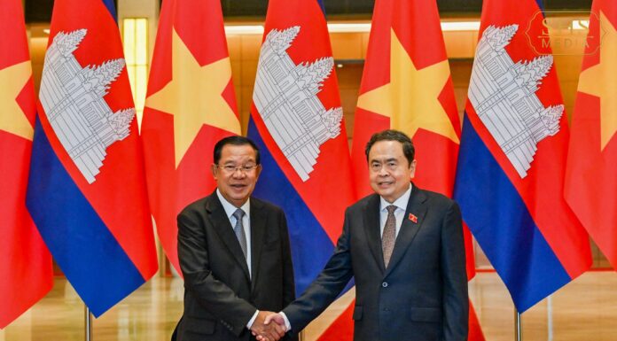 សម្ដេចអគ្គមហាសេនាបតីតេជោ ហ៊ុន សែន ប្រធានព្រឹទ្ធសភា និងជាប្រធានគណបក្សប្រជាជនកម្ពុជា បានអញ្ជើញជួបពិភាក្សាការងារជាមួយឯកឧត្តម Pham Minh Chinh នាយករដ្ឋមន្ត្រីនៃសាធារណរដ្ឋសង្គមនិយមវៀតណាម