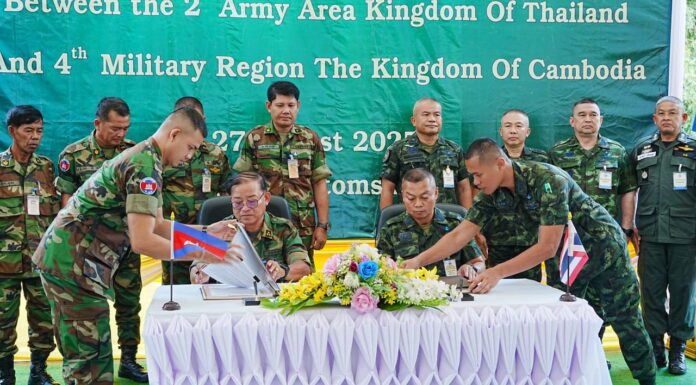 សេចក្តីប្រកាសព័ត៌មានរួម ស្ដីពីលទ្ធផលនៃកិច្ចប្រជុំវិសាមញ្ញគណៈកម្មាធិការព្រំដែនថ្នាក់យោធភូមិភាគ (RBC) រវាងយោធភូមិភាគទី៤របស់កម្ពុជា និងកងទ័ពភូមិភាគទី២របស់ថៃ នៅថ្ងៃទី២៧ ខែសីហា ឆ្នាំ២០២៥ ដោយភាគីថៃធ្វើជាម្ចាស់ផ្ទះ។
